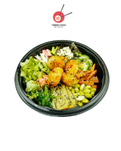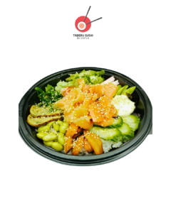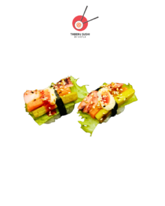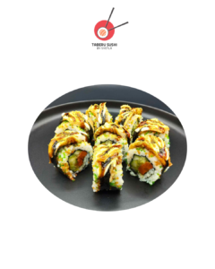 Рис для суши, угорь кабаяки, нори, запечённые овощи, соус Такара, соус терияки, хрустящая крошка