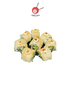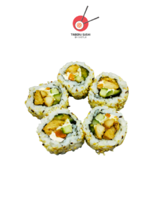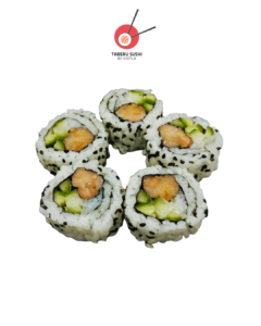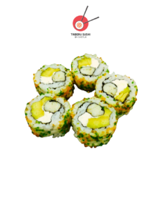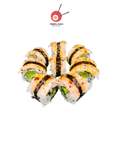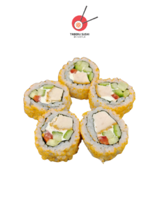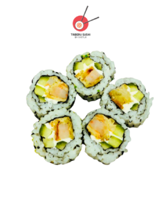 Нори, рис для суши, креветка Панко, огурец, сливочный сыр, острый майонез