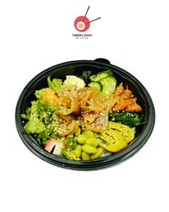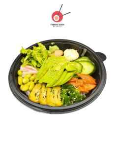 Рис для суши, соевый майонез, огурцы, морковь на пару, эдамаме, вакаме, авокадо, васаби, имбирь, омлет тамаго, зелёный салат, сурими, карпаччо из лосося